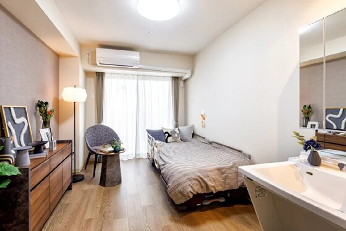 2025年12月にオープンした介護付き有料老人ホームです。都心へのアクセスが良好な立地でありながらも、落ち着いた雰囲気の住宅街に施設はあります。館内はご入居者様にゆったりとお寛ぎいただけるための空間設計がされており、ラウンジではご家族との談笑や読書をするなど、思い思いにお過ごしいただけます。また、屋上テラスからはスカイツリーを眺めることができます。テラス内にはテーブルセットが配置されているほか、歩行訓練スペースも備えられています。居室数は全95戸あり、すべてがプライバシーに配慮された完全個室となっています。居室内にはナースコール、介護ベッド、眠りSCAN、エアコン、収納、照明など安全、快適にお過ごしいただけるための設備が完備されています。