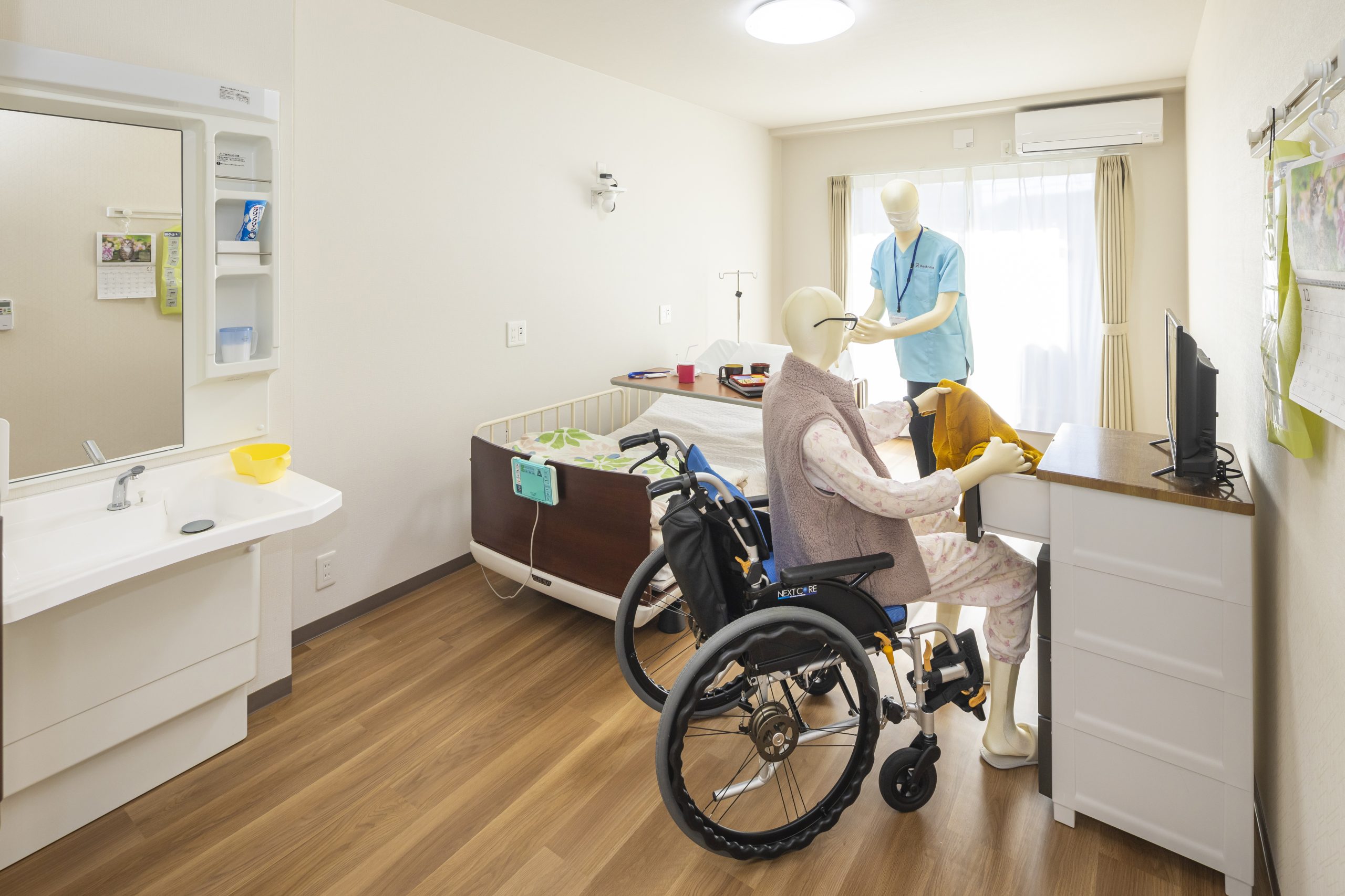2024年12月にオープンした施設です。居室数は全65戸あり、プライバシーにしっかりと配慮された空間となっています。居室面積は13.29㎡~17.83㎡あり生活しやすい広さが確保され、居室内には車いすの方も使用しやすい洗面台が設置されています。共用部に完備されている浴槽はお身体状態に合わせて安全に入浴いただけますので、快適な入浴タイムをご堪能いただけます。そのほか、機能訓練室もあり理学療法士・作業療法士によるリハビリもおこなえます。