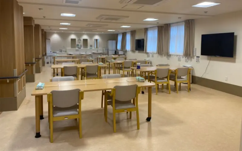パーキンソン病およびその関連疾患をお持ちの方に特化した、住宅型有料老人ホームです。ナースコールが配備された全59室の完全個室は、エアコンを完備したフラットフロアで安全安心に過ごせる住空間です。幅の広い引き戸式ドアが採用されていますので、車椅子をご利用の方も自由に出入りできます。お食事やサークル活動の際に利用するだけでなく、テレビ観賞やレクリエーションなども楽しめるリビングダイニングには、ゆとりを持ってダイニングセットが設置されています。共用浴室は、個浴室のほか、チェア浴やストレッチャー浴ができる特殊浴室もあり、お身体の状態に合った浴室をご利用いただけます。