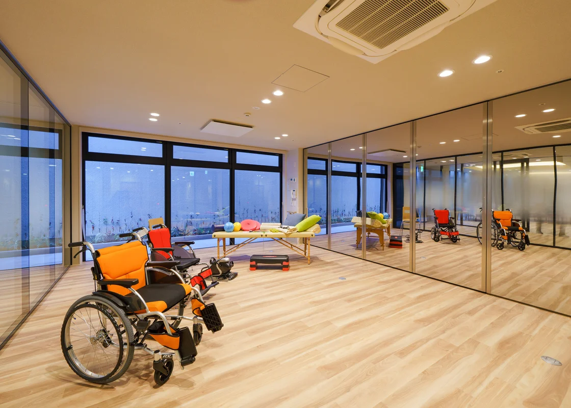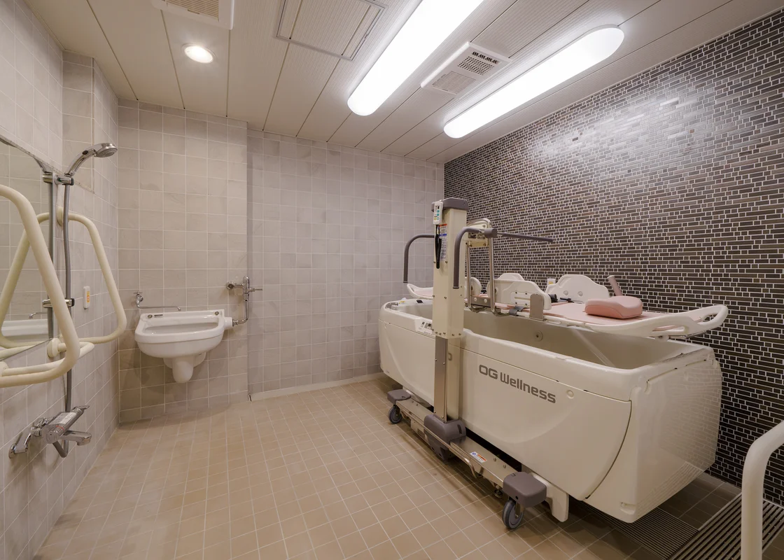 日中には看護師が常駐し、ご入居者様の健康管理やたん吸引なども医療処置のほか、連携病院や調剤薬局、介護スタッフ等と密に連携を取り合い、ご入居者様の健康をお支えしています。そのほか、介護スタッフは24時間常駐し、ケアプランに沿って食事、入浴、排せつなどの介護サポートを実施しています。リハビリ面ではご入居者様のご様子やご意向に合わせた個別のリハビリメニューを提案し、無理なく楽しく機能向上の維持と回復を目指しています。