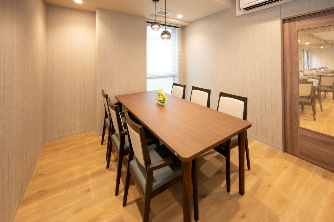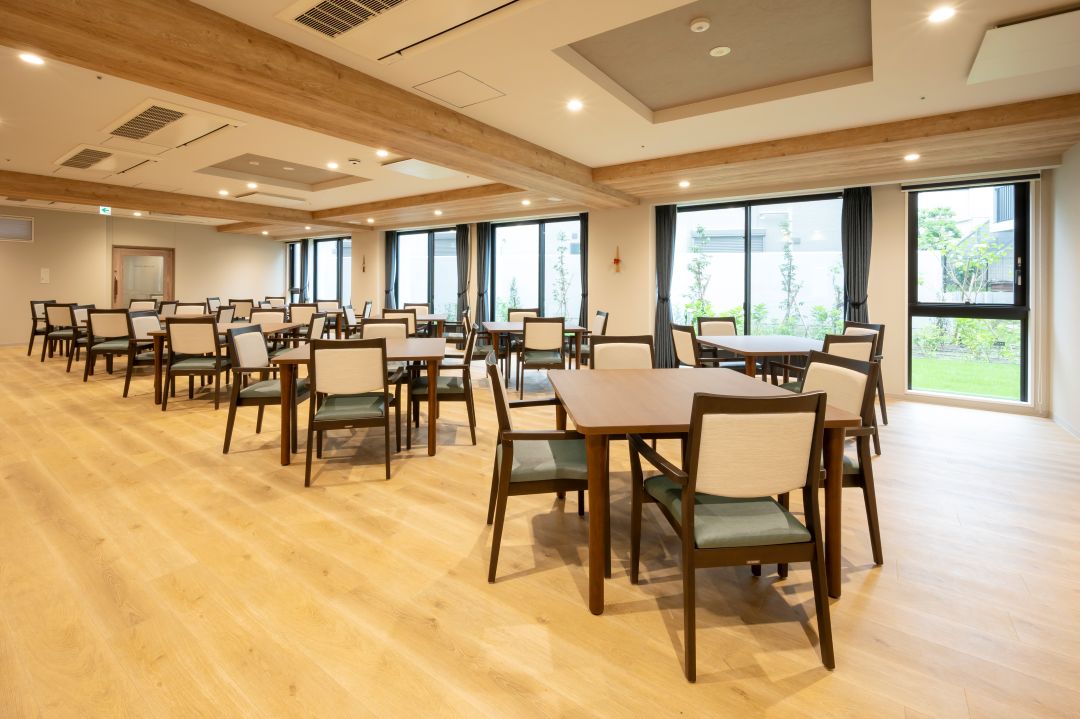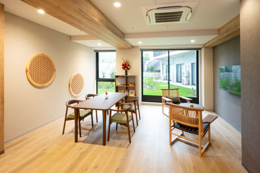 2025年8月にオープンした介護付き有料老人ホームです。地上5階建ての建物内に75室の居室がある中規模施設で、ストレッチャーを格納できるサイズのエレベーターを備えたバリアフリー設計です。和テイストで落ち着きのあるラウンジ、庭に面した大きな窓から自然光が差し込む明るいダイニング、各フロアのリビングなど、のんびり寛げるスペースが各所に設けられています。ご家族やご友人とプライベートな時間を過ごせるファミリーダイニングでは、水入らずでのお食事をお召し上がりいただけます。共用浴室は一人ずつ入浴する個浴タイプで、ストレッチャー浴槽を備えた機械浴室もございますので、介護度が上がっても安全に快適なバスタイムをお楽しみいただけます。