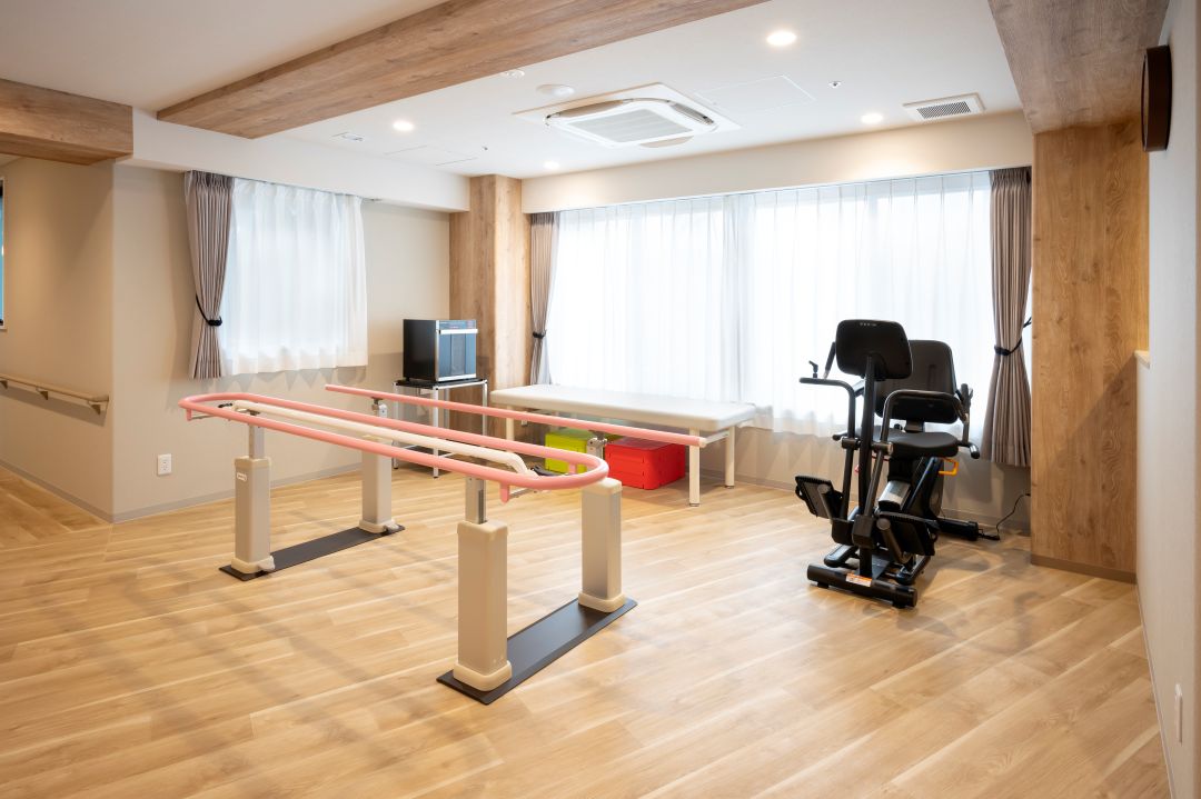 24時間常駐の介護スタッフ、365日常勤の看護スタッフ、機能訓練を指導する理学療法士(PT)が連携を取り、ご入居者様が快適に安全に生活できる環境を整えています。介護スタッフは、お一人おひとりのお身体状態や認知機能を考慮してケアマネジャーが作成するケアプランに則り、必要に応じたサポートを行います。看護スタッフは、毎日の健康管理や投薬支援、医師の指導に基づく医療ケアなどを行い、ご入居者様の健康を支えます。協力医療機関に所属する理学療法士(PT)は、リハビリコーナーにおいて個別リハビリを指導し、自立への支援と身体機能の維持向上に寄与します。