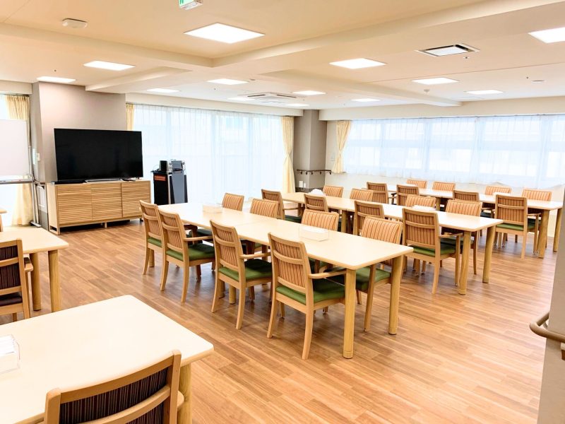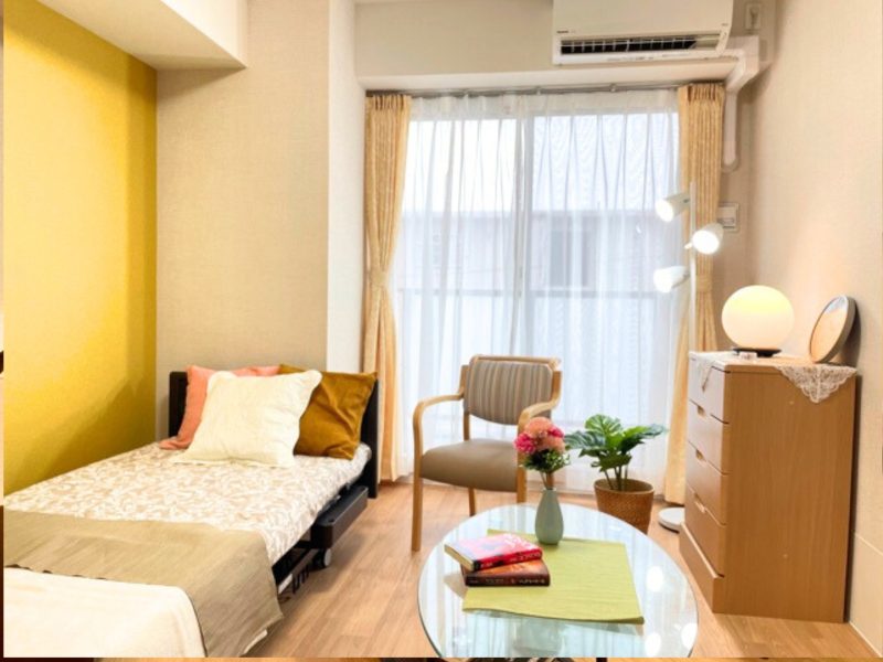 羽田空港から程近い場所に施設はあります。館内は明るい色合いのフローリングやインテリアが採用され温かみが感じられるアットホームな雰囲気です。全57室ある居室はすべてが完全個室で、プライバシーに配慮された空間で、居室面積は18㎡ ~ 36.㎡ありゆとりのある広さが確保されていますので、ゆったりとお過ごしいただけます。居室内にはナースコールはもちろんのこと、洗面台、トレイ、収納、エアコンなどの設備が完備されています。共用部には食堂、浴室、談笑を楽しめるソファーやテーブルが配置された共用スペースなども充実しています。