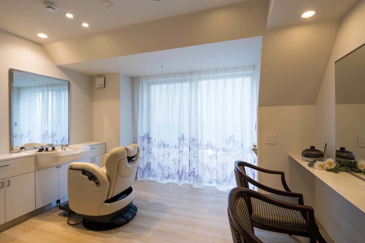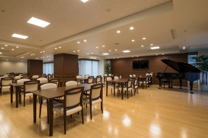 落ち着きある住宅街に建つ、5階建ての介護付き有料老人ホームです。エントランスは道路から奥まったところに位置していますので、施設内では外部からの目を気にすることなく、リラックスしてお過ごしいただけます。広いエントランスロビーや各フロアのラウンジスペースには、椅子やソファが設置されていますので、ちょっとした休憩や歓談にご利用いただけます。デッキテラスに出られる1階ダイニングは、自然光溢れる開放的な空間で、お食事やレクリエーションをお楽しみいただけます。ビューティーサロンや機能訓練室、喫煙室など、充実した共有設備を利用して快適な毎日を送れます。共用浴室は個浴室のほかに機械浴室もございますので、介護度が高い方も安全にご入浴いただけます。